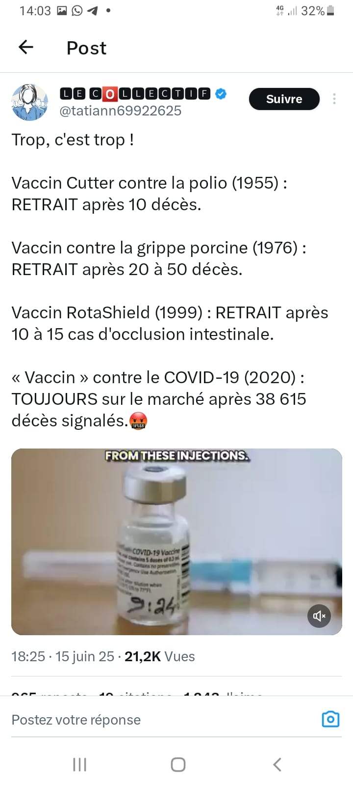 Cliquer sur l'affiche pour vous mettre en lien avec l'intervention d'Anne-Marie YIM, docteur en chimie organique, à la conférence du 29-06-2025 organisée par le collectif "No Pass Aix" à Saint-Victoret (vidéo 2).