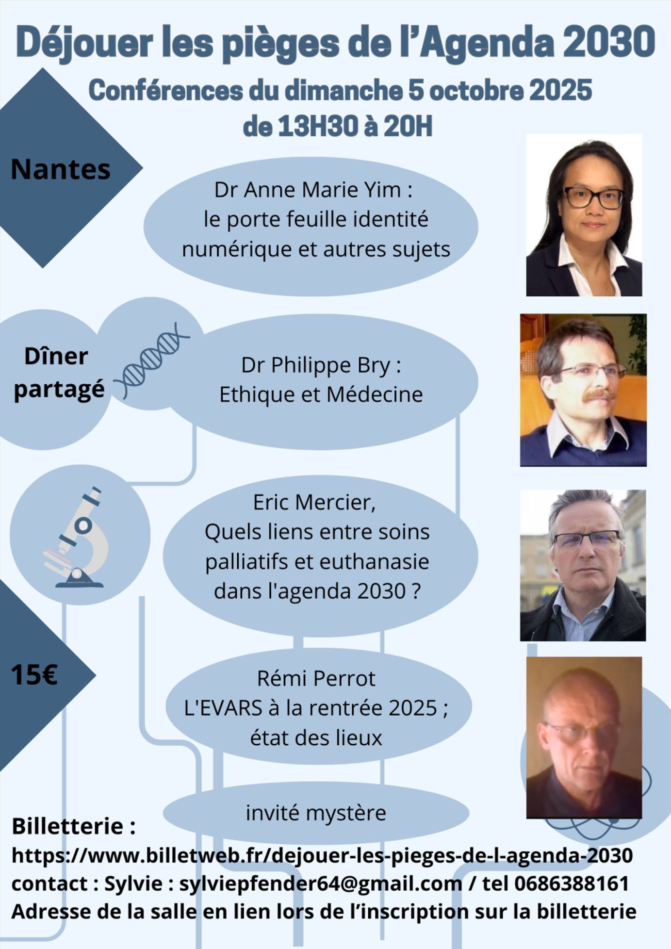 Cliquer sur les affiches pour vous mettre en lien avec les 5 vidéos de la conférence de Gloriane BLAIS avocate, Michel PROCUREUR médecin ORL, Anne-Marie YIM docteur en chimie organique, Jean-Marc SABATIER directeur de recherche au CNRS et docteur en biologie cellulaire et microbiologie, Patrick JAULENT docteur et ingénieur en électronique, Nacima MDHAFAR-BOUZEROURA médecin généraliste, organisée par le collectif "les Masques Blancs" à Nantes le 07-09-2024.