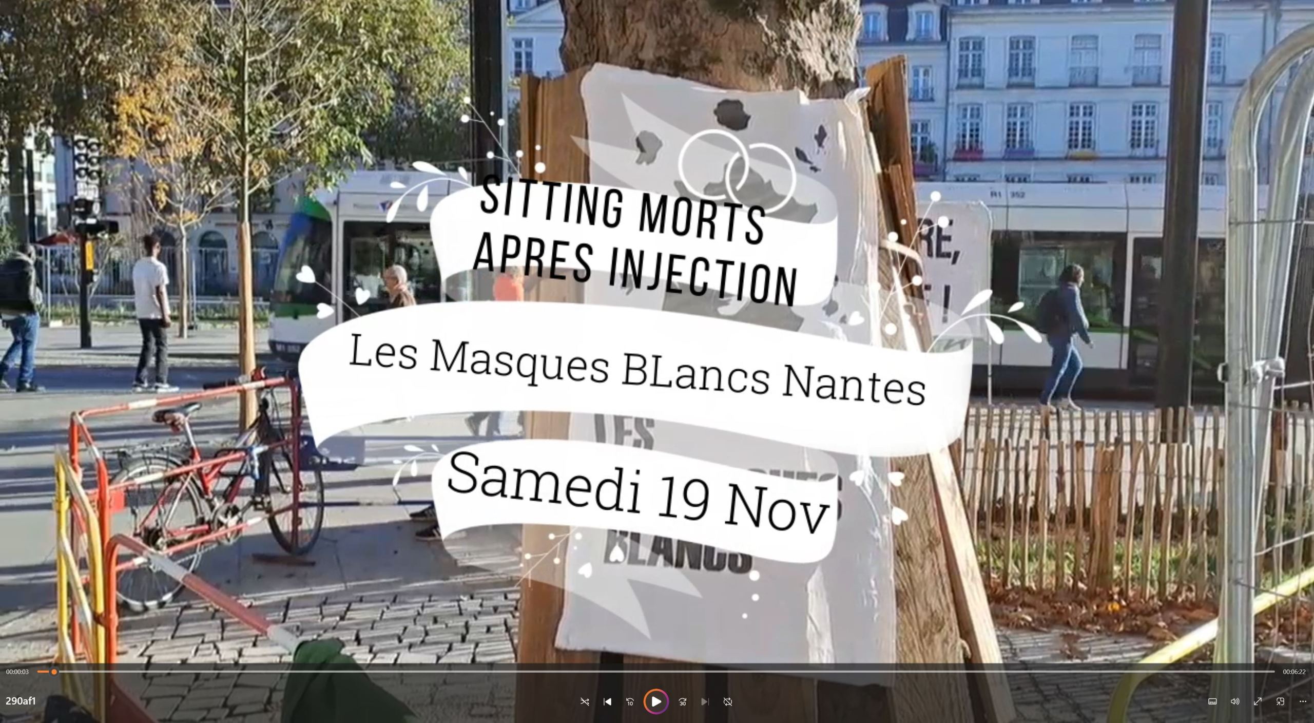 Cliquer sur l'affiche pour vous mettre en lien avec la vidéo des Masques Blancs pour un sitting à Nantes le 09-11-2024.