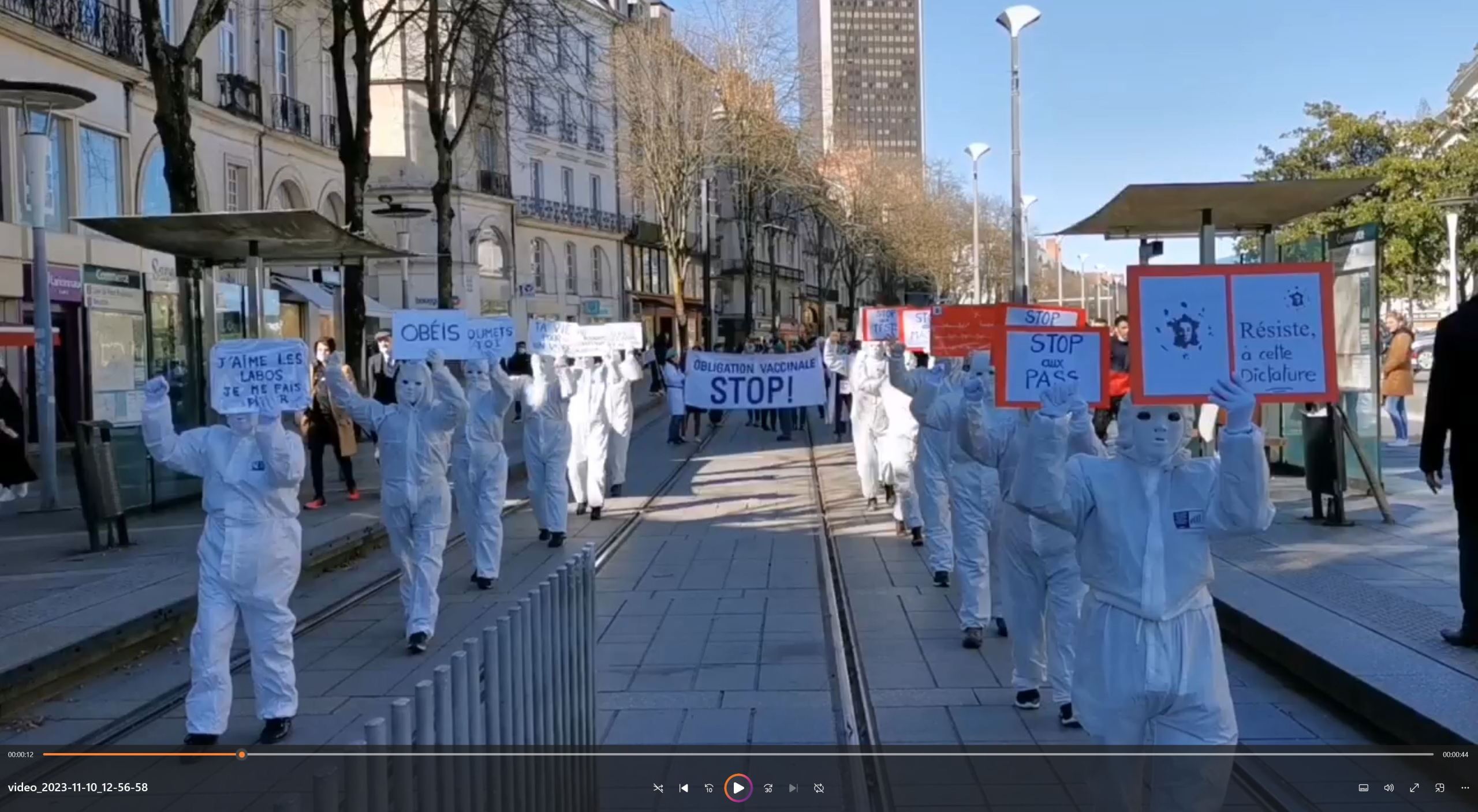 Cliquer sur l'affiche pour vous mettre en lien avec la vidéo des Masques Blancs pour une manifestation à Nantes le 16-10-2022.