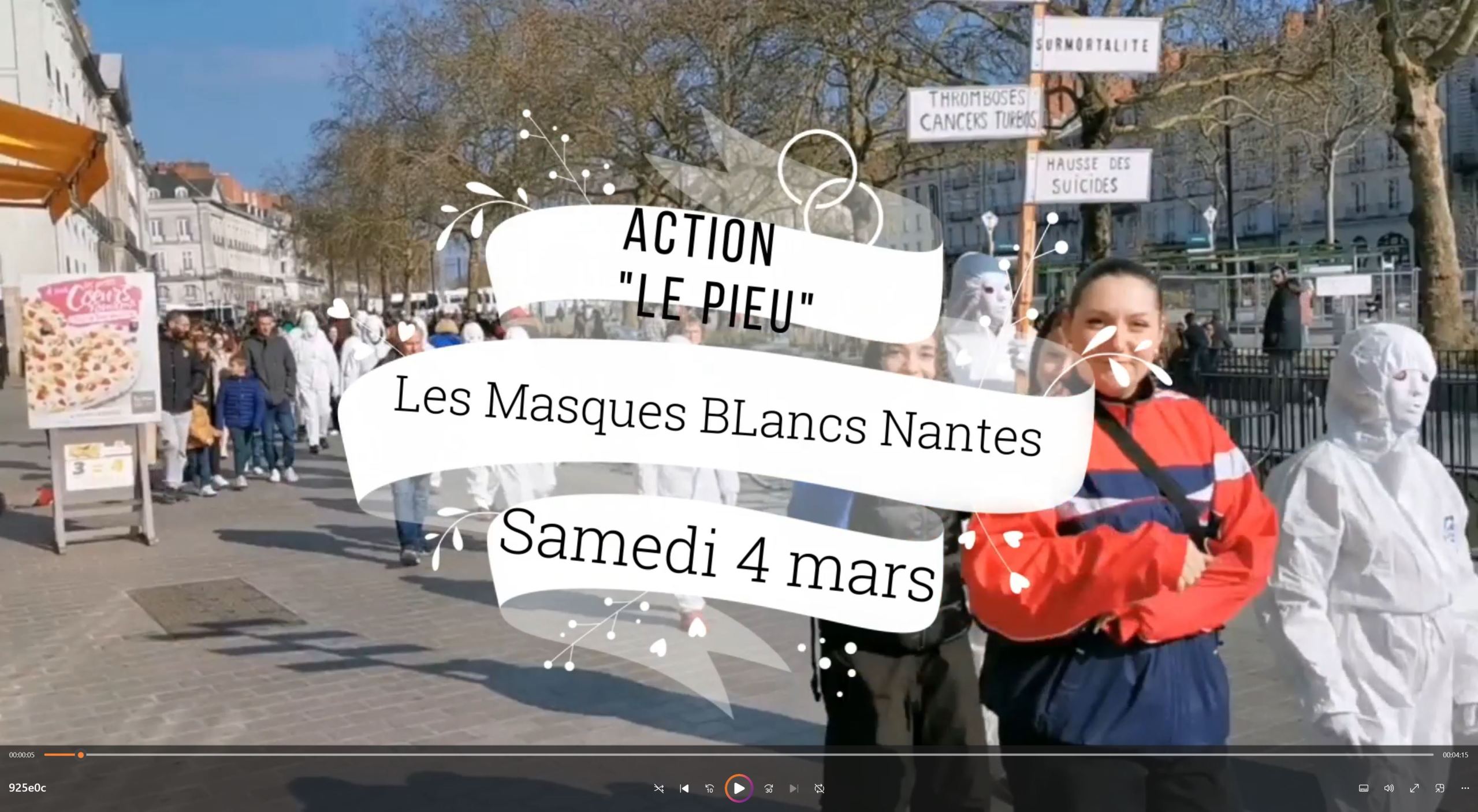 Cliquer sur l'affiche pour vous mettre en lien avec la vidéo des Masques Blancs pour une manifestation à Nantes le 04-03-2023.