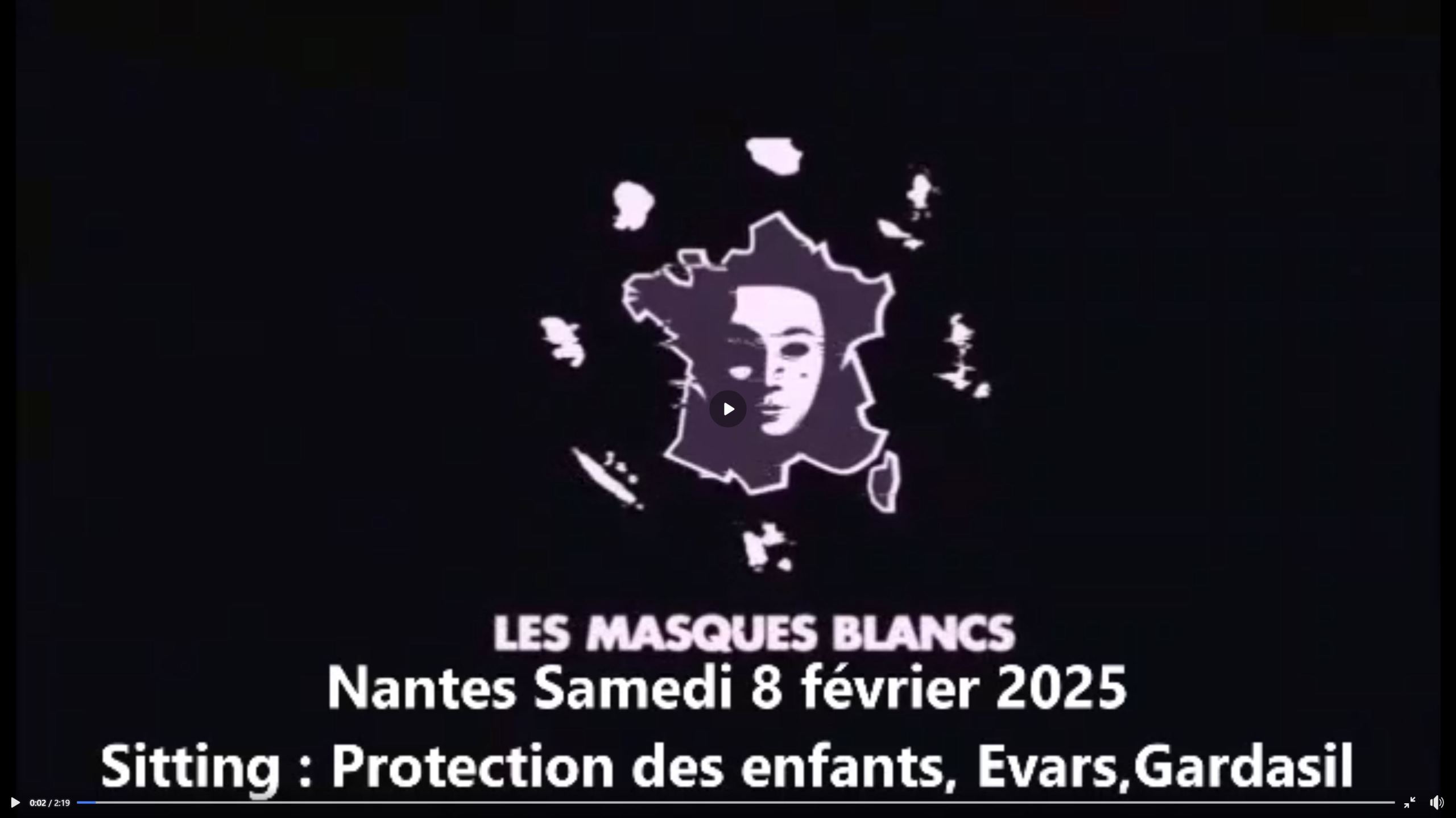 Cliquer sur l'affiche pour vous mettre en lien avec la vidéo des Masques Blancs pour un sitting à Nantes sur le thème de la protection et de la défense des enfants le 08-02-2025.