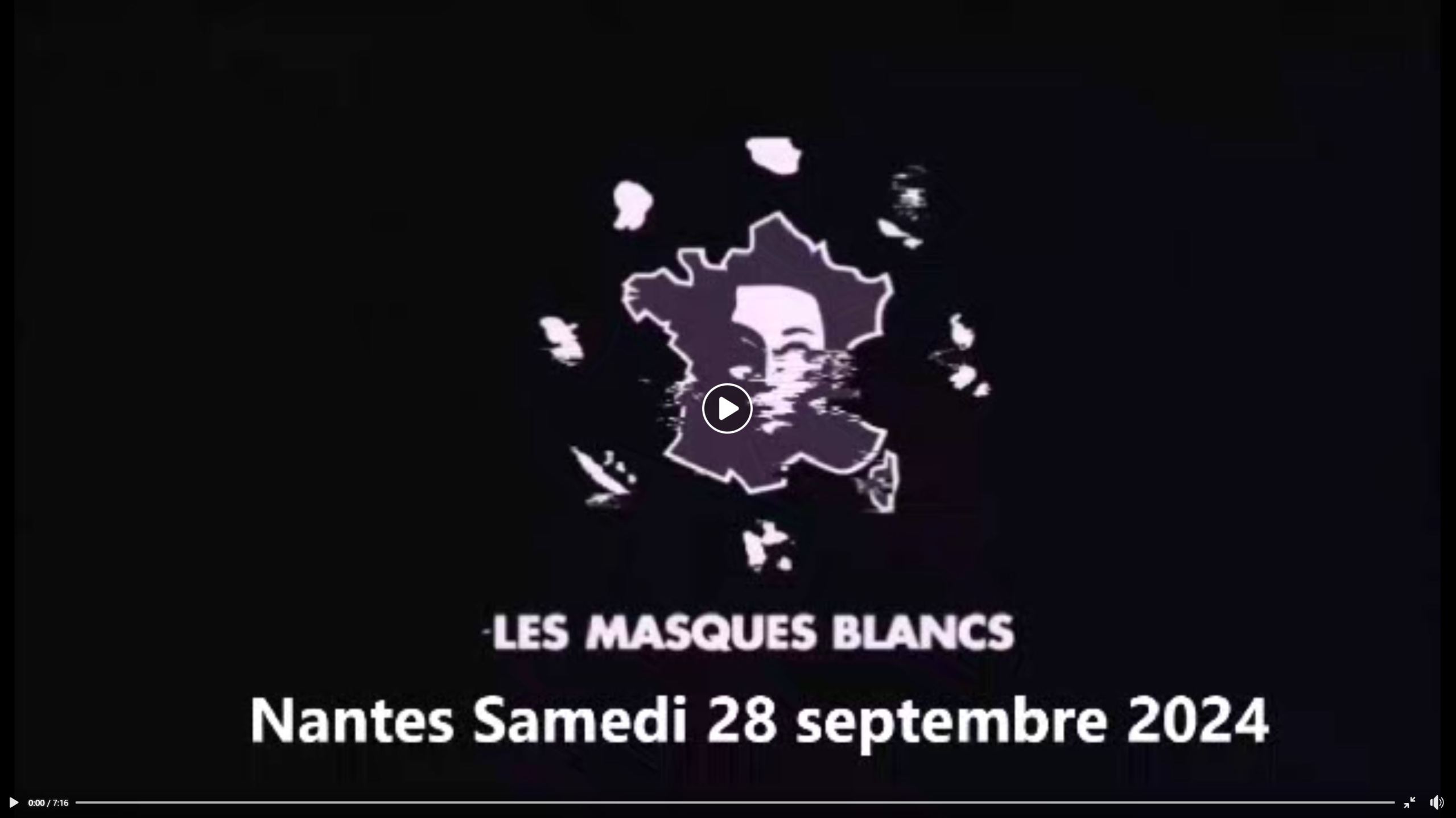 Cliquer sur l'affiche pour vous mettre en lien avec la vidéo des Masques Blancs pour une manifestation à Nantes en juillet 2023.