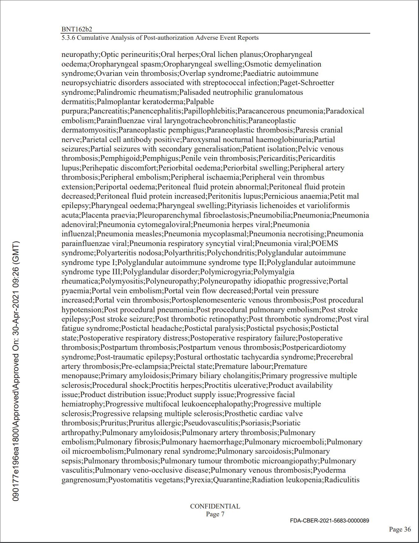 La FDA approuvait en 2021 le "vaccin" covid-19 de Pfizer avec 9 pages d'effets secondaires identifiés avant la mise sur le marché. Pfizer voulait les garder secrets pendant 75 ans !