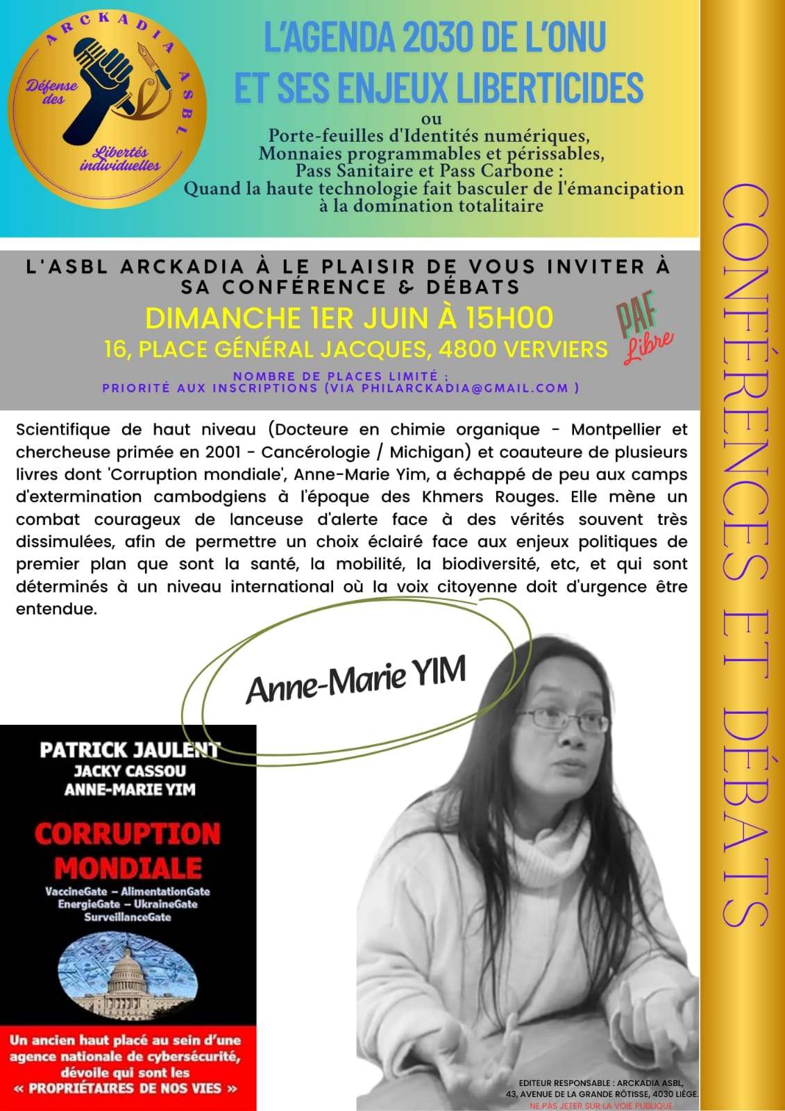 Cliquer sur l'affiche pour vous mettre en lien avec la conférence du Docteur Anne-Marie Yim organisée par le collectif des Éveillés des 3 frontières le 31-03-2025: le portefeuille d'identité numérique et l'Euro numerique.